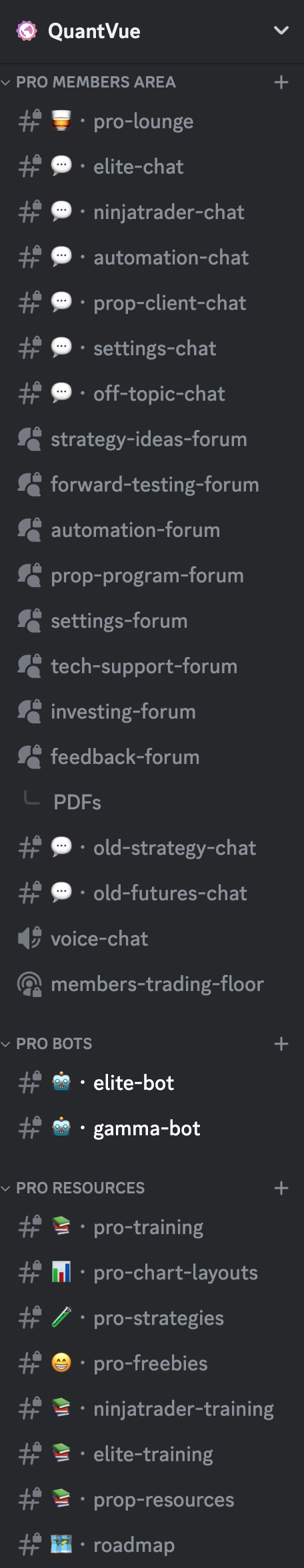 <figure><img src="https://3178589940-files.gitbook.io/~/files/v0/b/gitbook-x-prod.appspot.com/o/spaces%2FQfhm34PBBu4H5xyZnp6V%2Fuploads%2F7KnqRyH6Jwkh4z6w0yeA%2FScreenshot%202024-05-14%20at%201.39.31%20PM.png?alt=media&#x26;token=8494d913-9665-466c-a562-5da8b0c55fca" alt="" width="228"><figcaption><p>QuantVue members only channels</p></figcaption></figure>